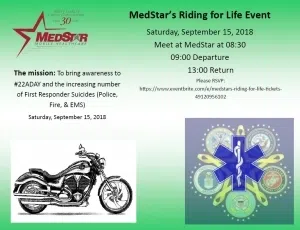 The ride starts at Medstar’s headquarters at 2900 Alta Mere Dr. in Fort Worth at 8:30 a.m. and ends at the Back Porch Sports Grill in Glen Rose.