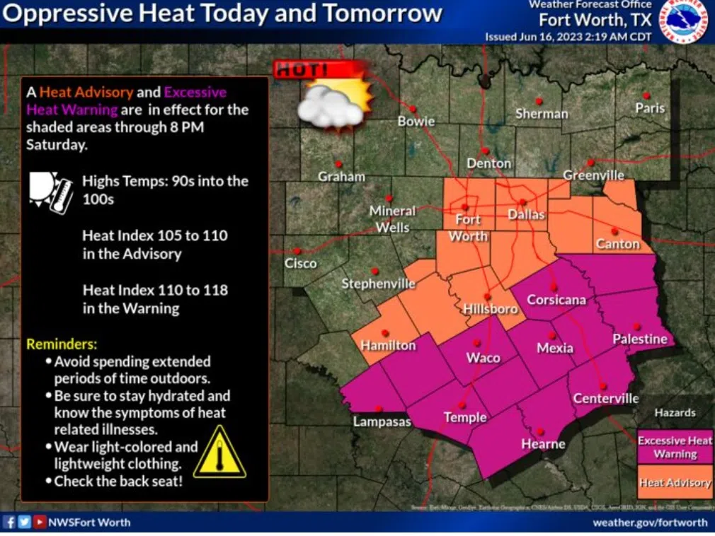 Heat Advisory & Excessive Heat Warning Through 8 PM Saturday. High 90s/100s; Real Feel 105 to 118 | KLIF 570 News & Info | KLIF-AM