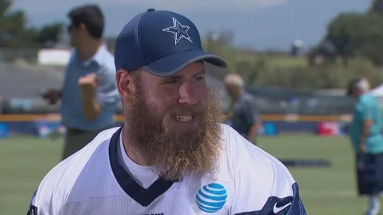Travis FrederickWFAA photo FRISCO, Texas (AP) - A year ago, Dallas Cowboys offensive lineman Joe Looney grabbed the spotlight during training camp as the prankster who took the field in star running b...